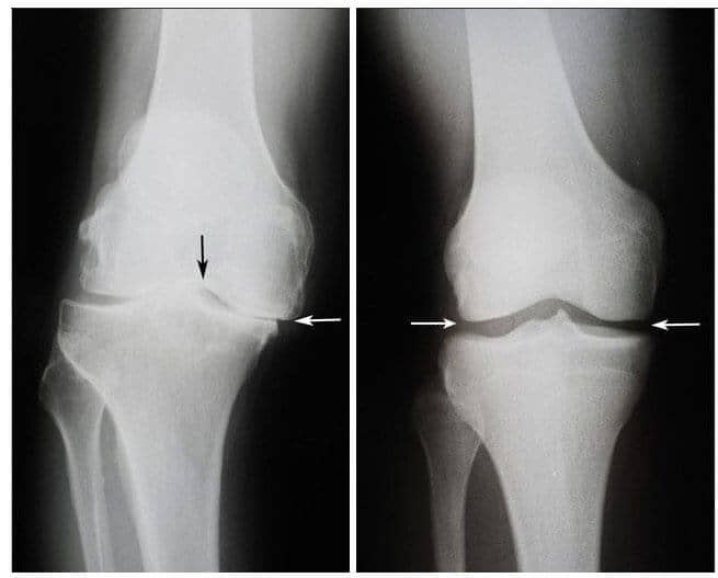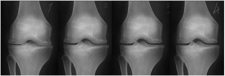 - Rendgenski snimak ispod pokazuje tipičnu sliku oporavka zgloba koljena.